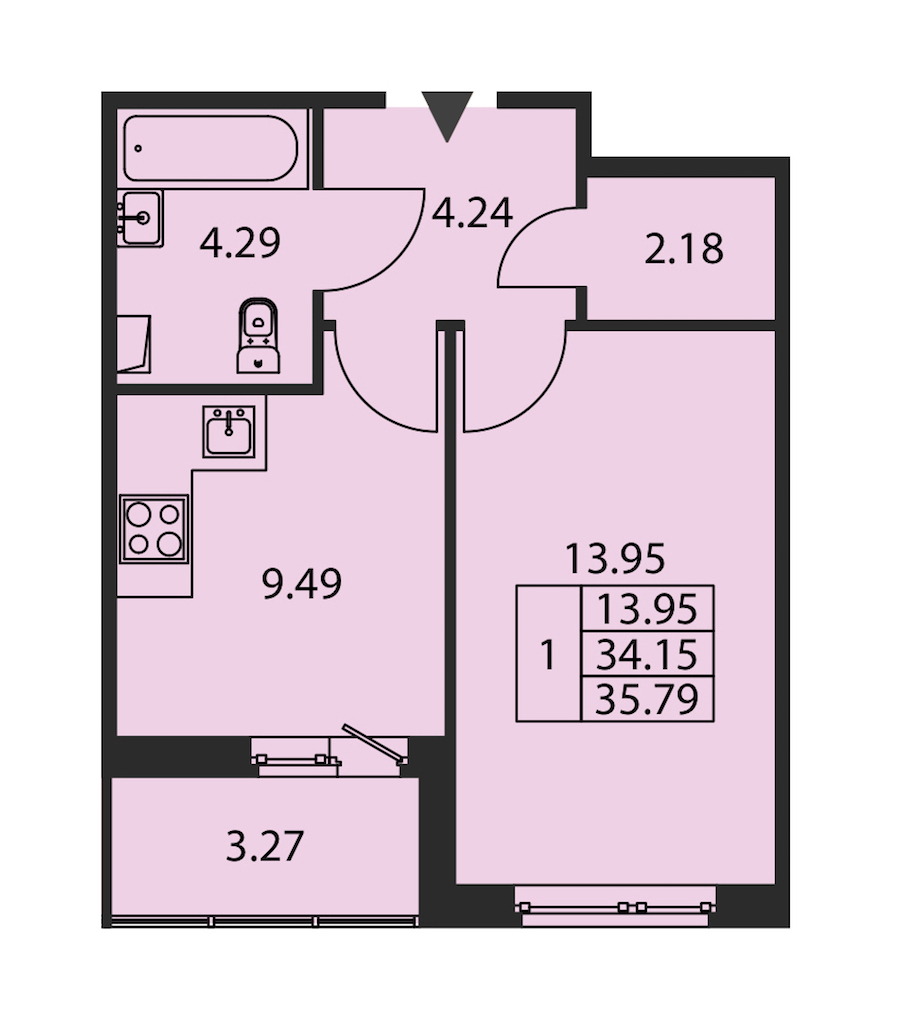 Однокомнатная квартира на 1-ом этаже 34,15 кв.м