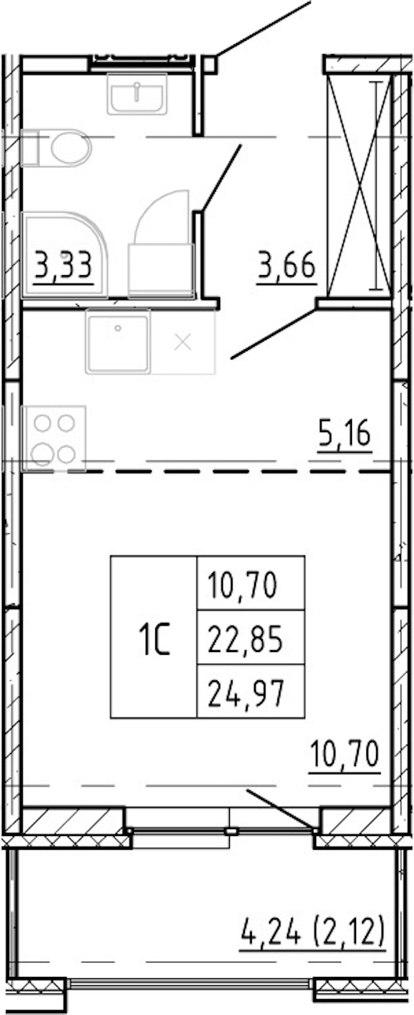 Квартира-студия на 7-ом этаже 22,85 кв.м
