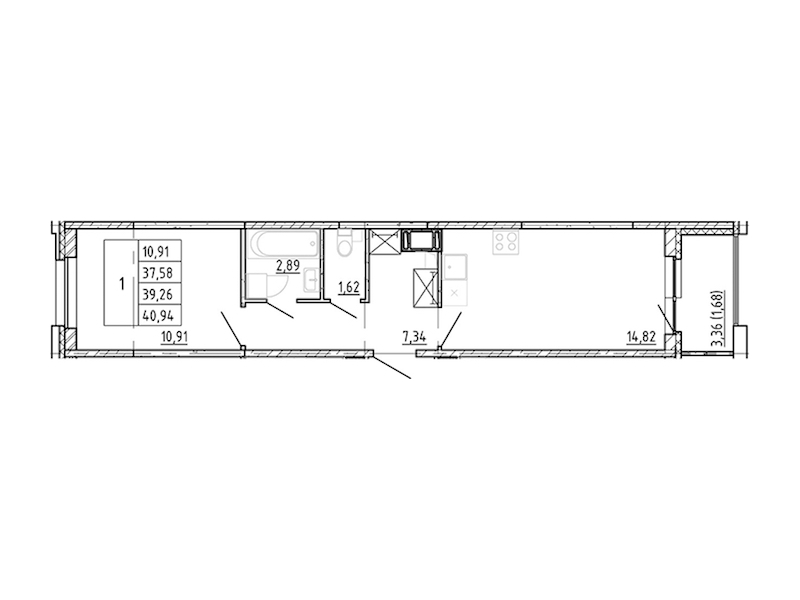 Однокомнатная квартира на 8-ом этаже 37,58 кв.м
