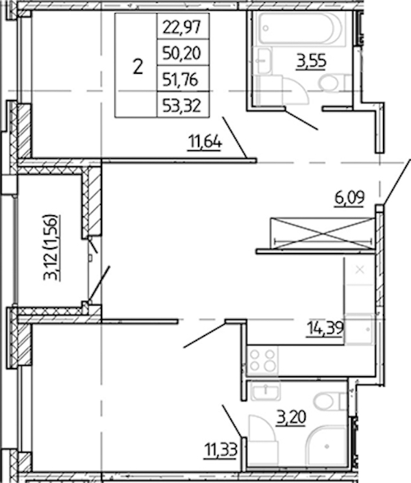 - Площадь50,2 м2