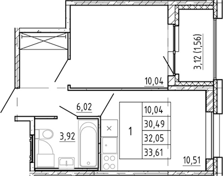 - Площадь кухни10,51 м2