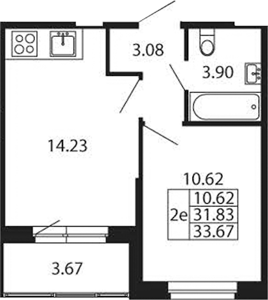 • Площадь кухни14,23 м2