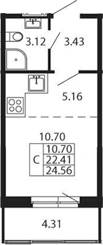• Площадь22,41 м2