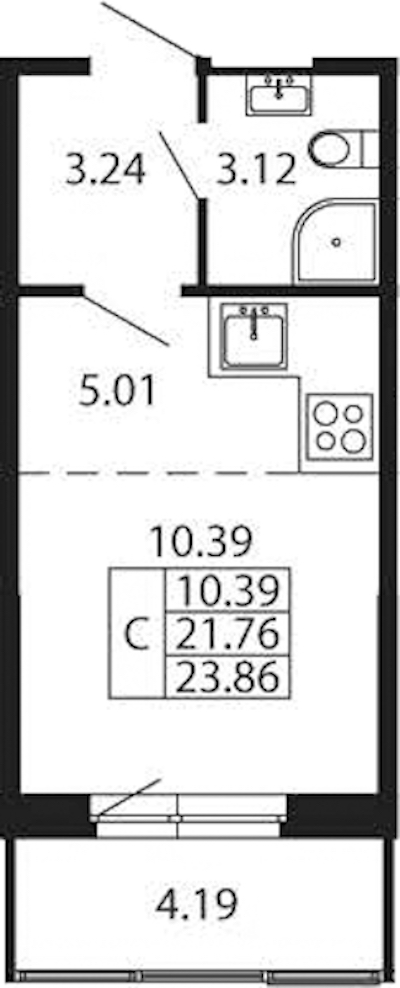 Квартира-студия на 6-ом этаже 21,76 кв.м