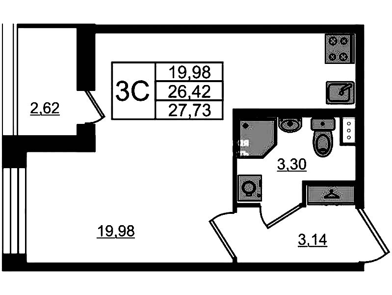 Квартира-студия на 1-ом этаже 26,1 кв.м