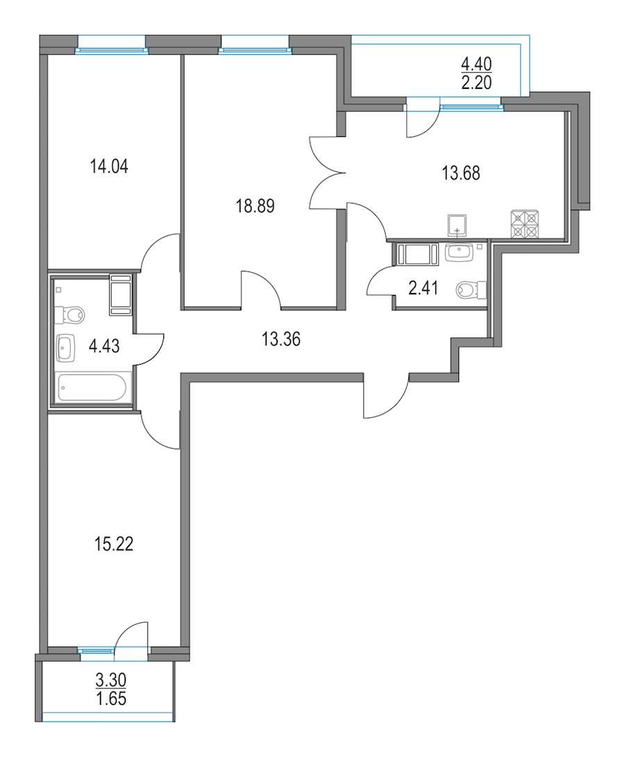 Трёхкомнатная квартира на 4-ом этаже 82,03 кв.м