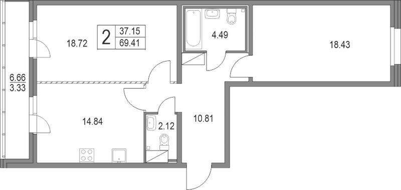 - Площадь69,41 м2