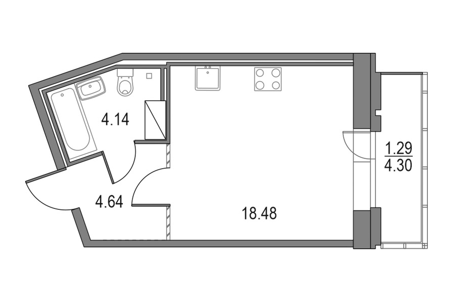 Квартира-студия на 16-ом этаже 27,26 кв.м