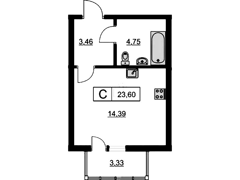 - Площадь23,4 м2