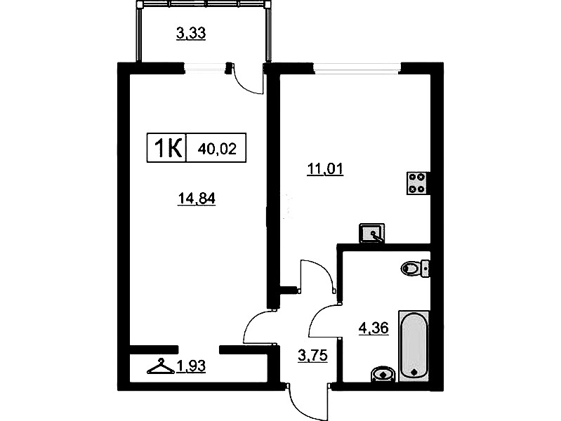 - Площадь40,2 м2