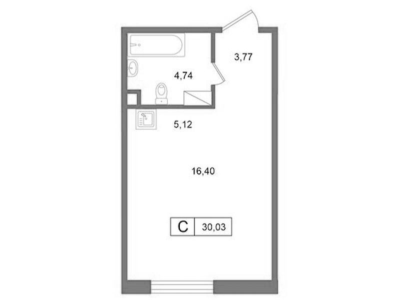 Квартира-студия на 1-ом этаже 30,03 кв.м