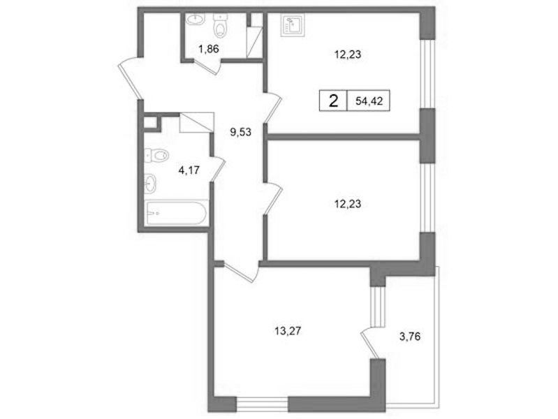 Двухкомнатная квартира на 2-ом этаже 54,42 кв.м