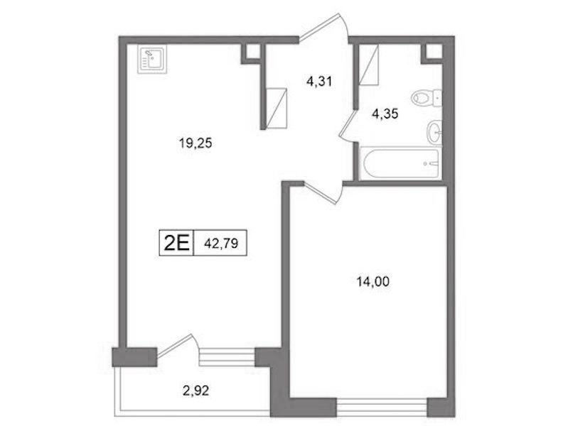 - Площадь42,79 м2