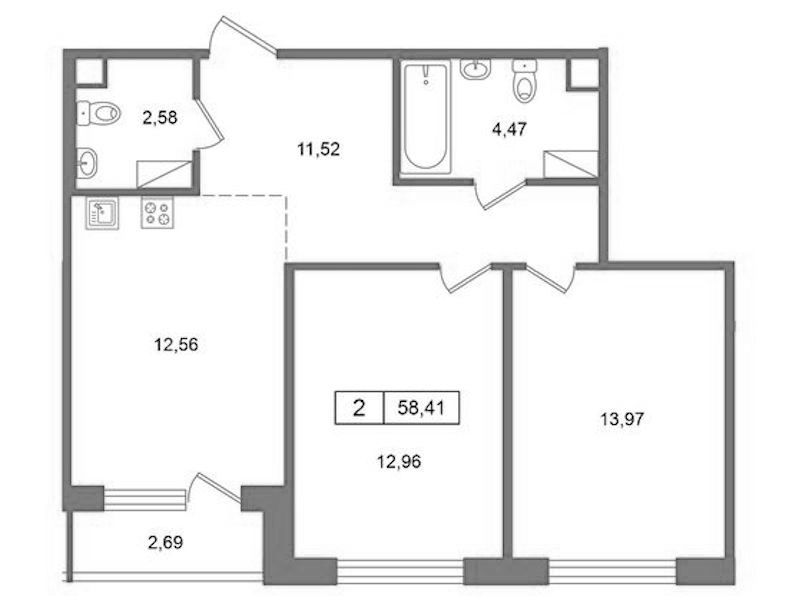 - Площадь58,41 м2