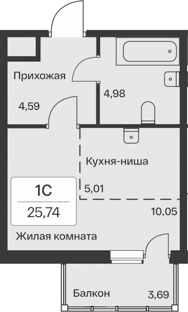Квартира-студия на 4-ом этаже 25,8 кв.м