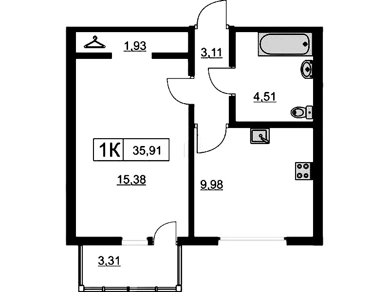 - Площадь35,4 м2