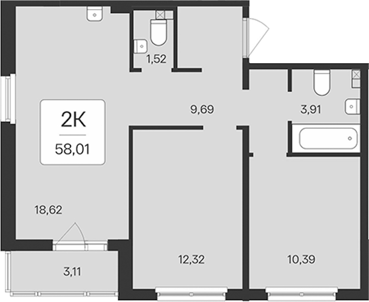 - Площадь58,01 м2