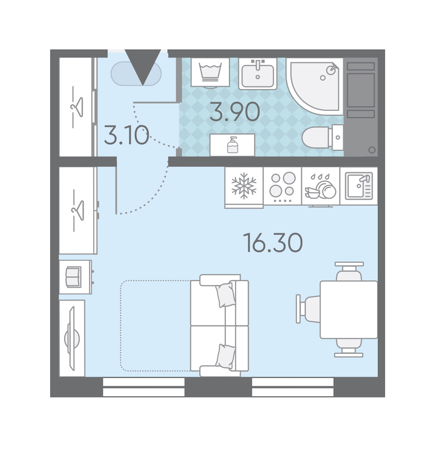 Квартира-студия на 14-ом этаже 23,3 кв.м