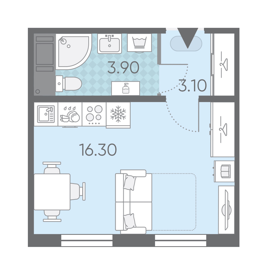 Квартира-студия на 11-ом этаже 23,3 кв.м