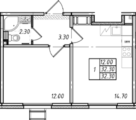 - Площадь32,3 м2