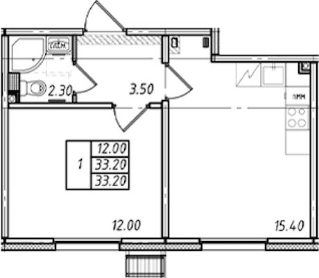 Однокомнатная квартира на 1-ом этаже 33,2 кв.м