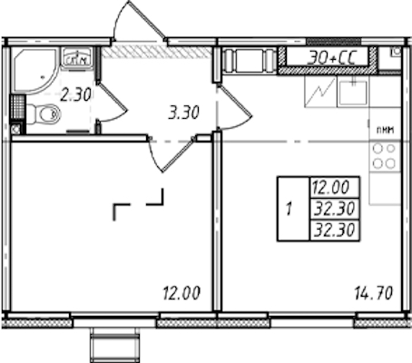 Однокомнатная квартира на 3-ем этаже 32,3 кв.м
