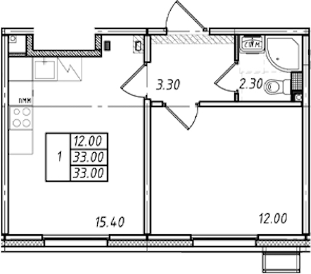 Однокомнатная квартира на 1-ом этаже 33 кв.м