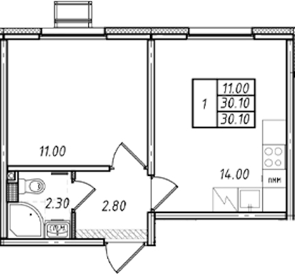 Однокомнатная квартира на 7-ом этаже 30,1 кв.м