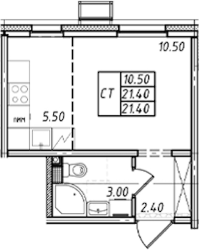 Квартира-студия на 1-ом этаже 21,4 кв.м