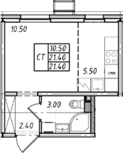 Квартира-студия на 1-ом этаже 21,4 кв.м