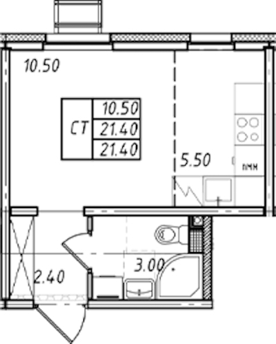 • Площадь21,4 м2