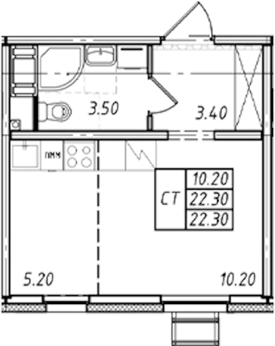 Квартира-студия на 2-ом этаже 22,3 кв.м