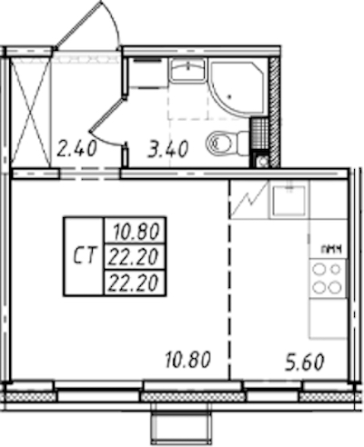 - Площадь22,2 м2