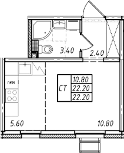 Квартира-студия на 2-ом этаже 22,2 кв.м