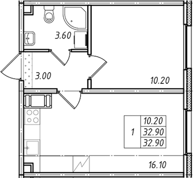 • Площадь32,9 м2