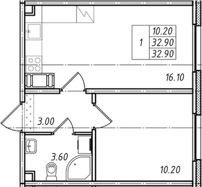 • Площадь32,9 м2