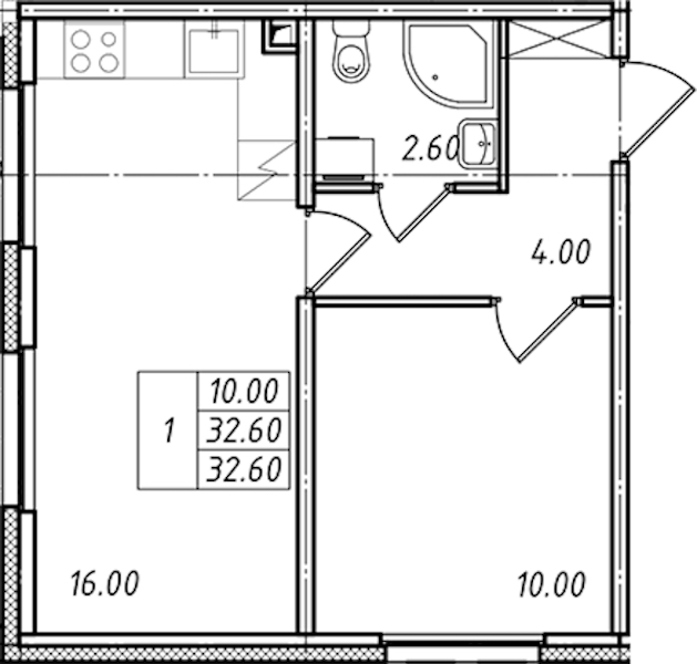 Однокомнатная квартира на 2-ом этаже 32,6 кв.м