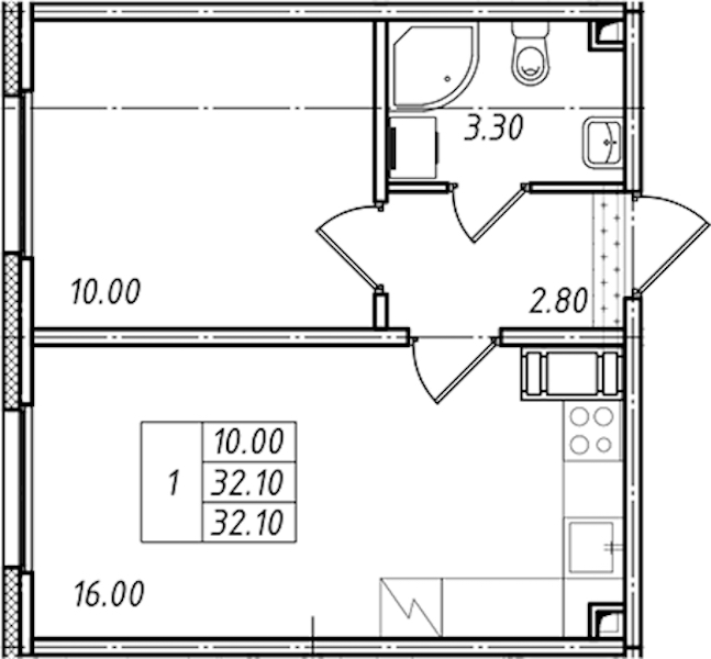 • Площадь32,1 м2
