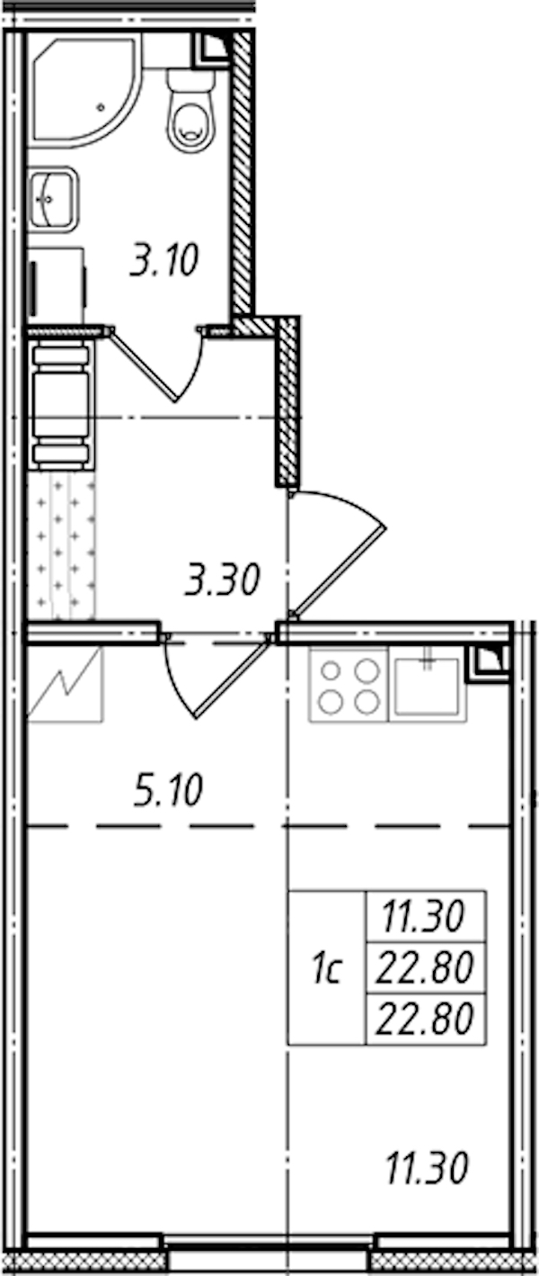 - Площадь22,8 м2