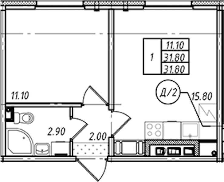 • Площадь31,8 м2