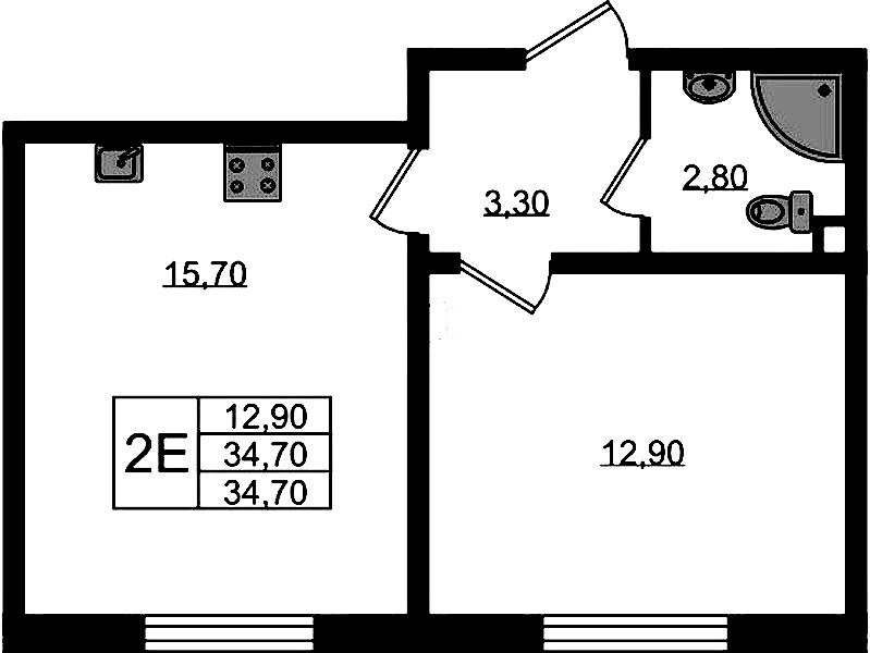 Однокомнатная квартира на 14-ом этаже 34,7 кв.м