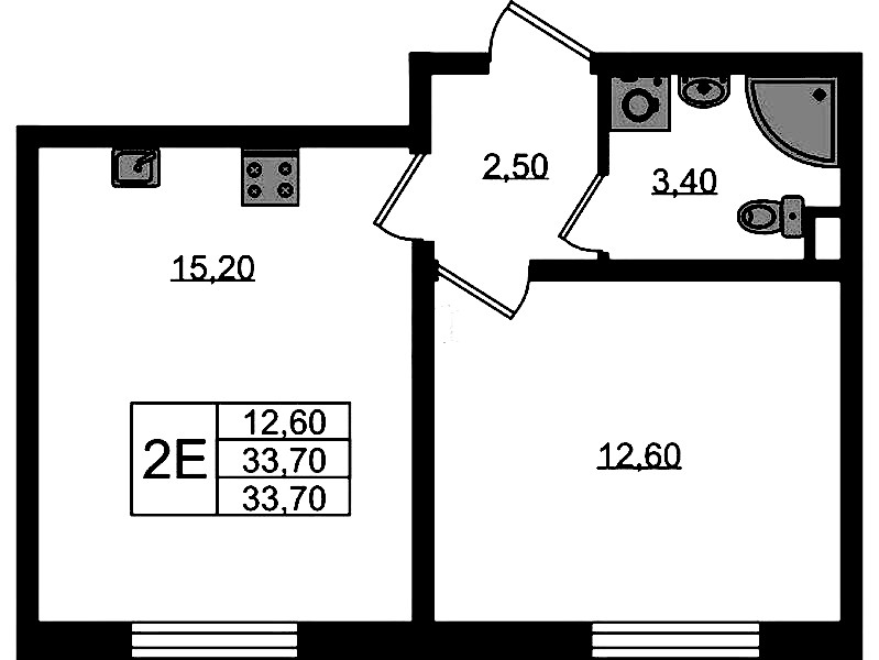 • Площадь33,7 м2