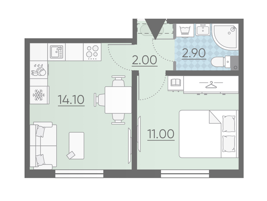 Однокомнатная квартира на 10-ом этаже 30 кв.м
