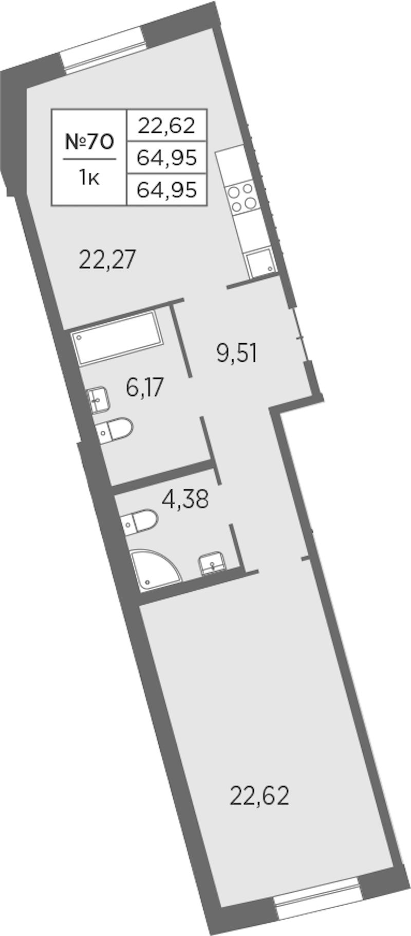 Однокомнатная квартира на 2-ом этаже 64,95 кв.м