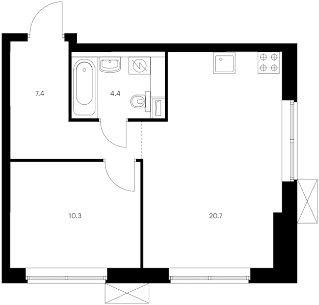 - Площадь42,8 м2