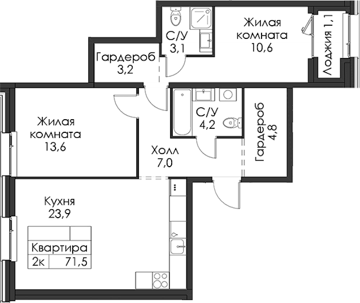 • Площадь71,5 м2