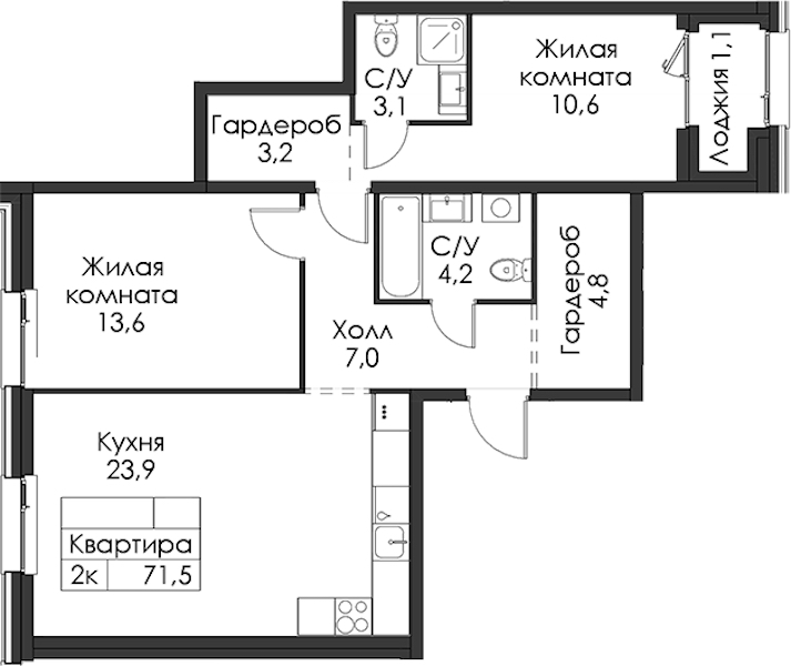 - Площадь71,5 м2