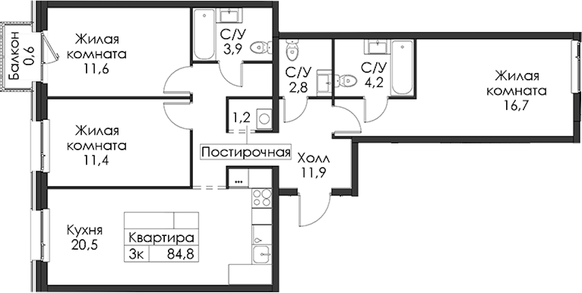 • Площадь84,8 м2