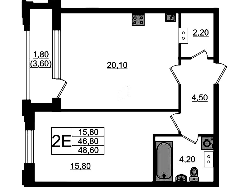 Однокомнатная квартира на 10-ом этаже 48,6 кв.м