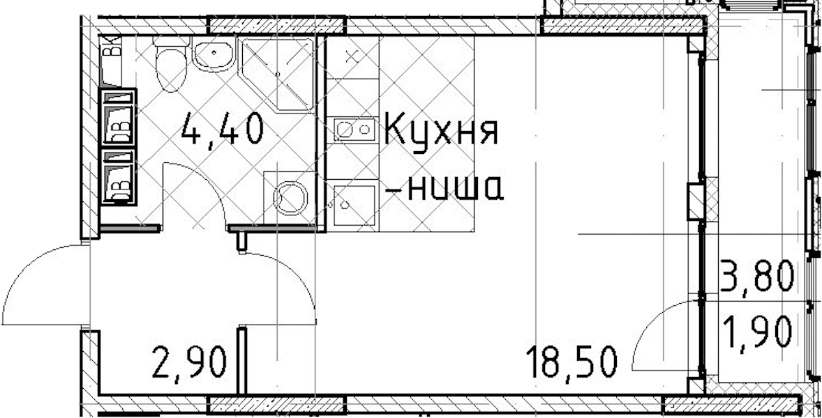 Квартира-студия на 9-ом этаже 27,7 кв.м